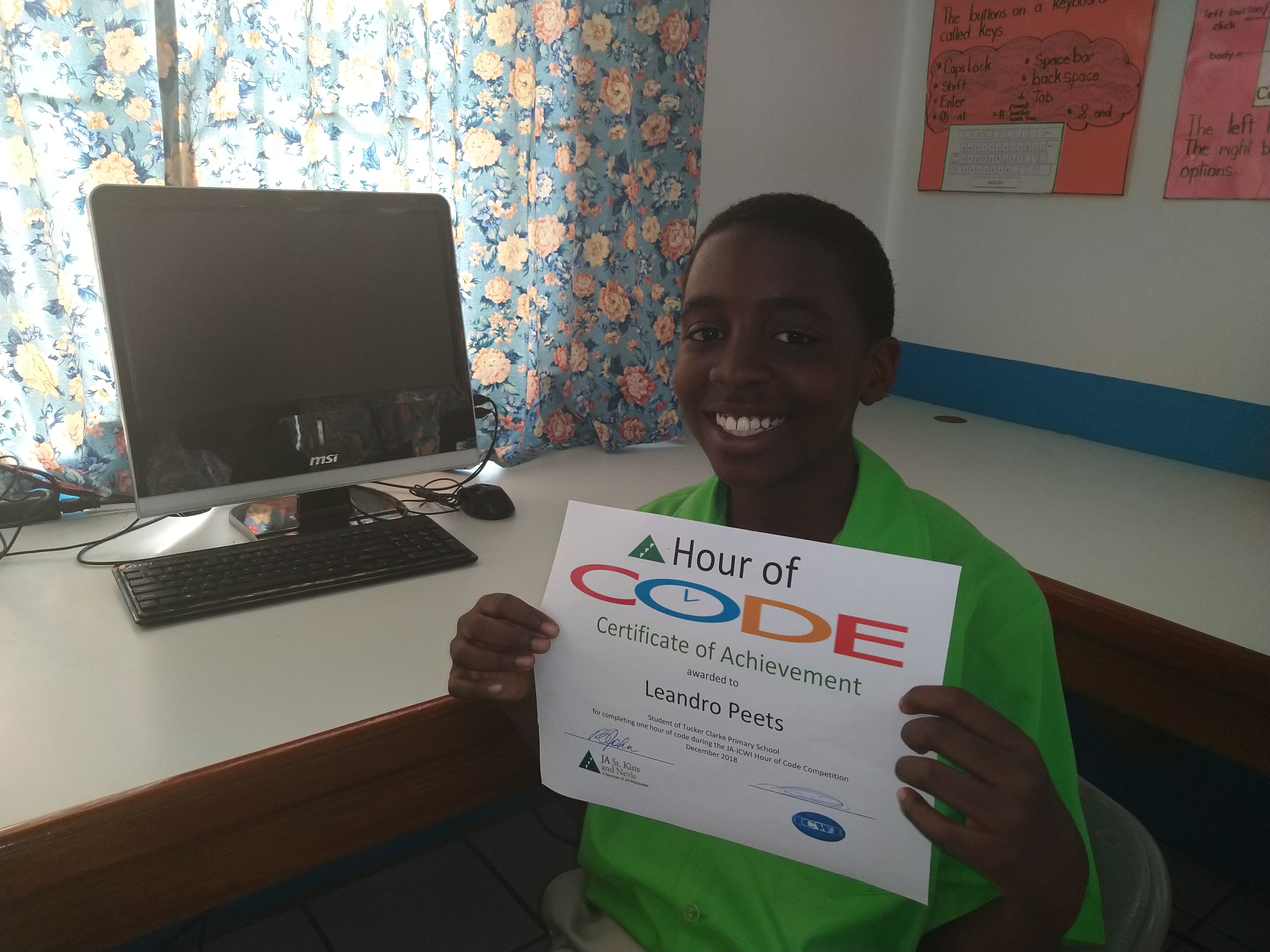 This reporter had a chit-chat with the grade 6 student of the Tucker-Clarke Primary School (formerly New Town Primary) on Monday this week (4th February) at the school following a ceremony for graduates of the Hour of Code Competition organised by the Junior Achievers programme in December 2018 featuring title sponsor Insurance Company of the West Indies (ICWI).