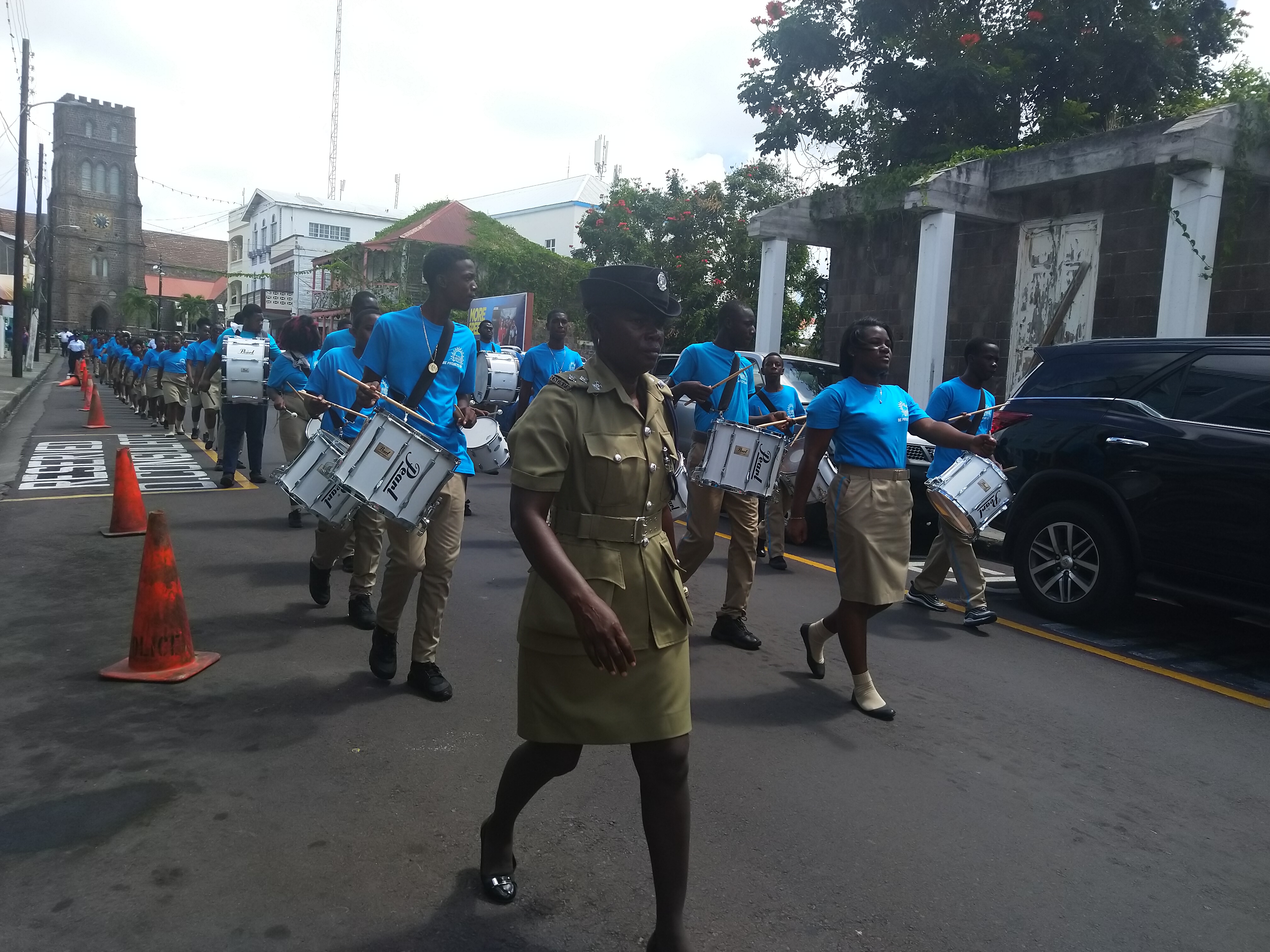 The march-rally outing that morning started at Greenlands pasture in Basseterre along Cayon Street next turning right onto Church Street, left on Liverpool Rowe and left onto Fort Street before swinging left on route to its starting point.