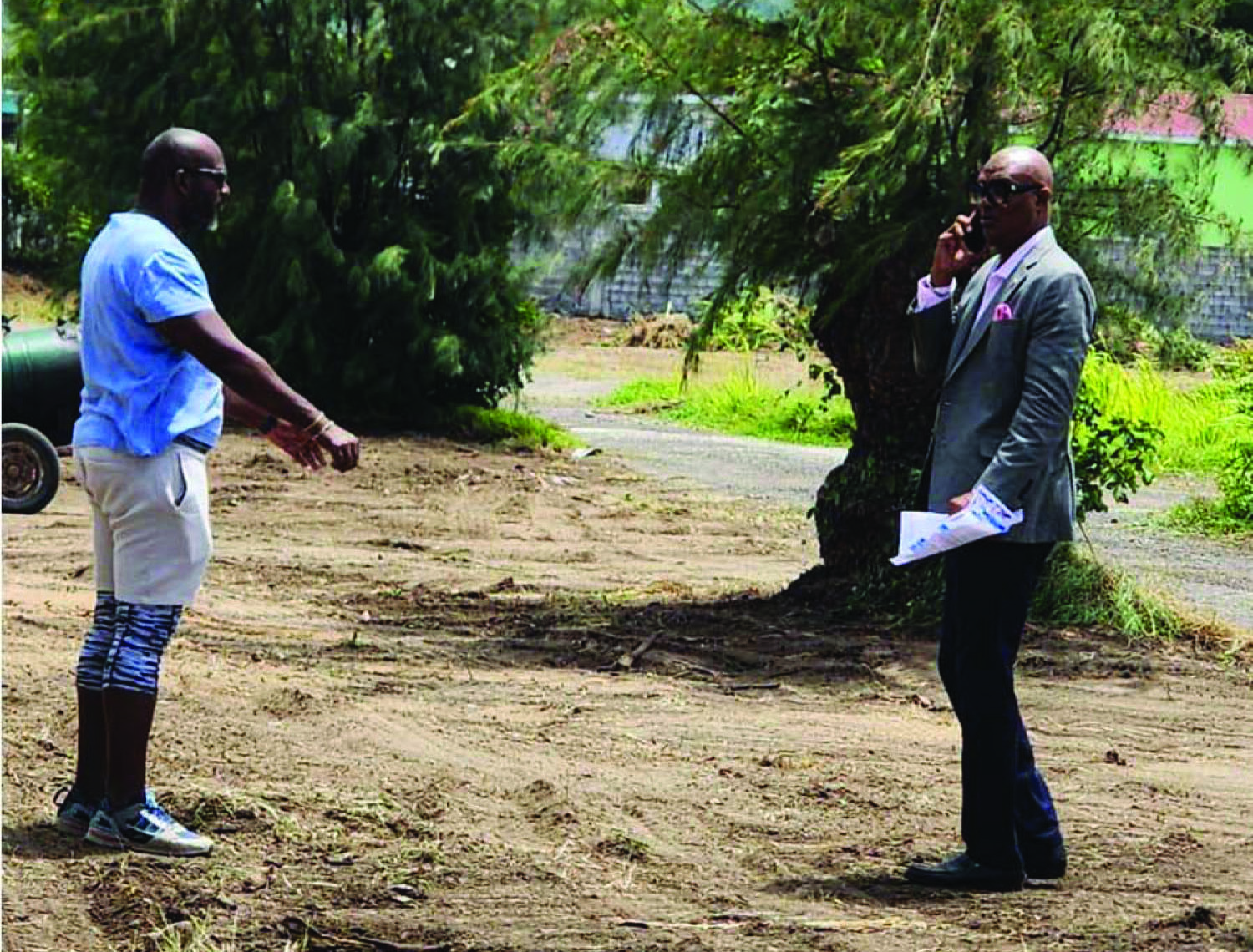 Deputy Prime Minister and Minister of Education, Hon. Dr. Geoffrey Hanley (right) seen at the construction site of the new Basseterre High School (Source: Facebook/HonDrGeoffreyHanley)