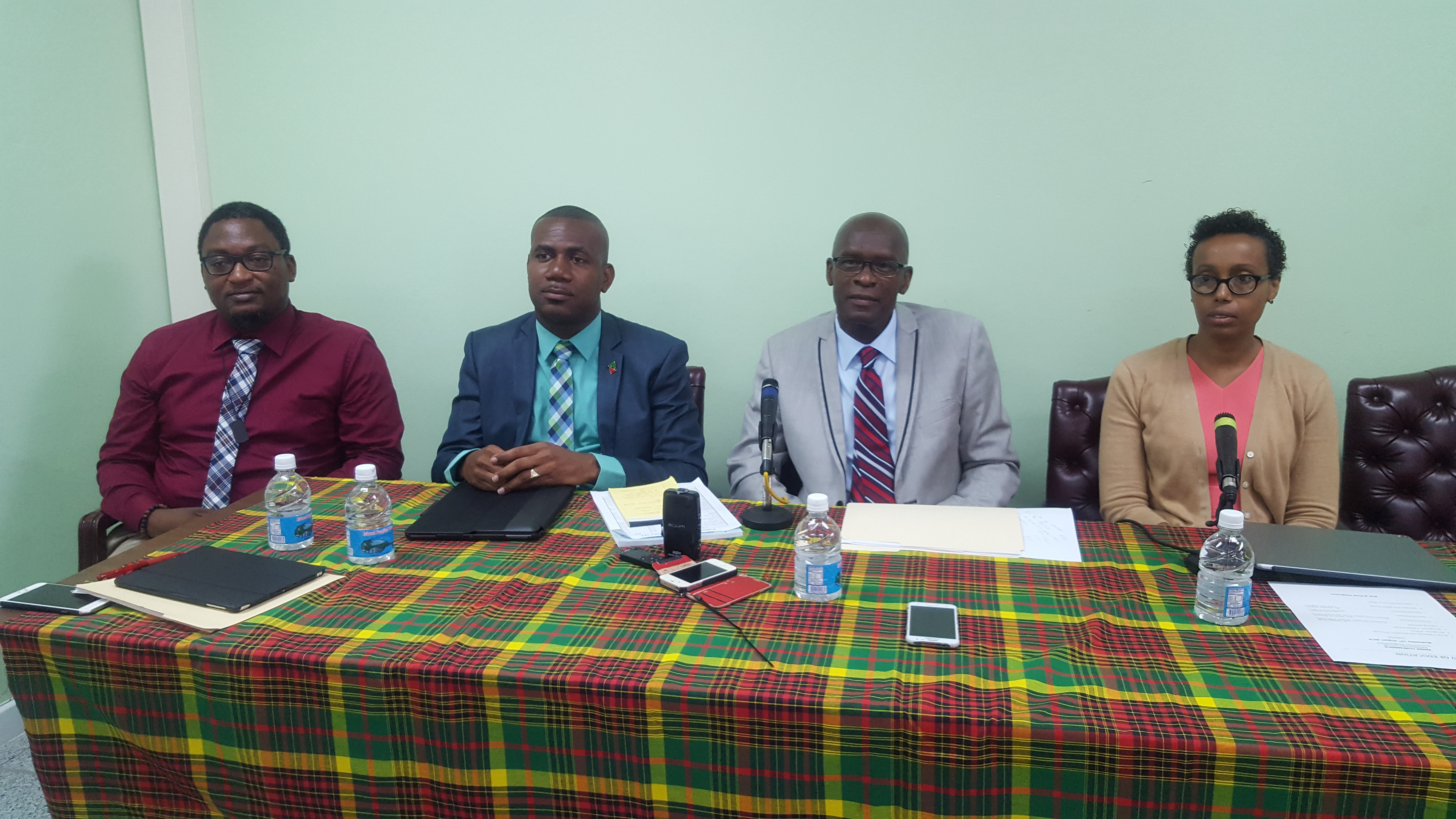 Photo: (Right to Left) Chief Education Officer Tricia Esdaille; Permanent Secretary in the Ministry of Education William Hodge; Deputy Prime Minister and Minister of Education Shawn Richards and Local CXC Registrar Solomon Claxton (Spokesman Snap)