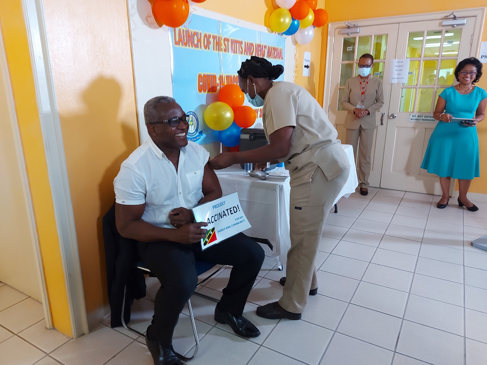 The first to receive the vaccine in St.Kitts-Nevis was Chief of Staff at the Joseph N. France General Hospital and member of the National COVID-19 Task Force Dr. Cameron Wilkinson.