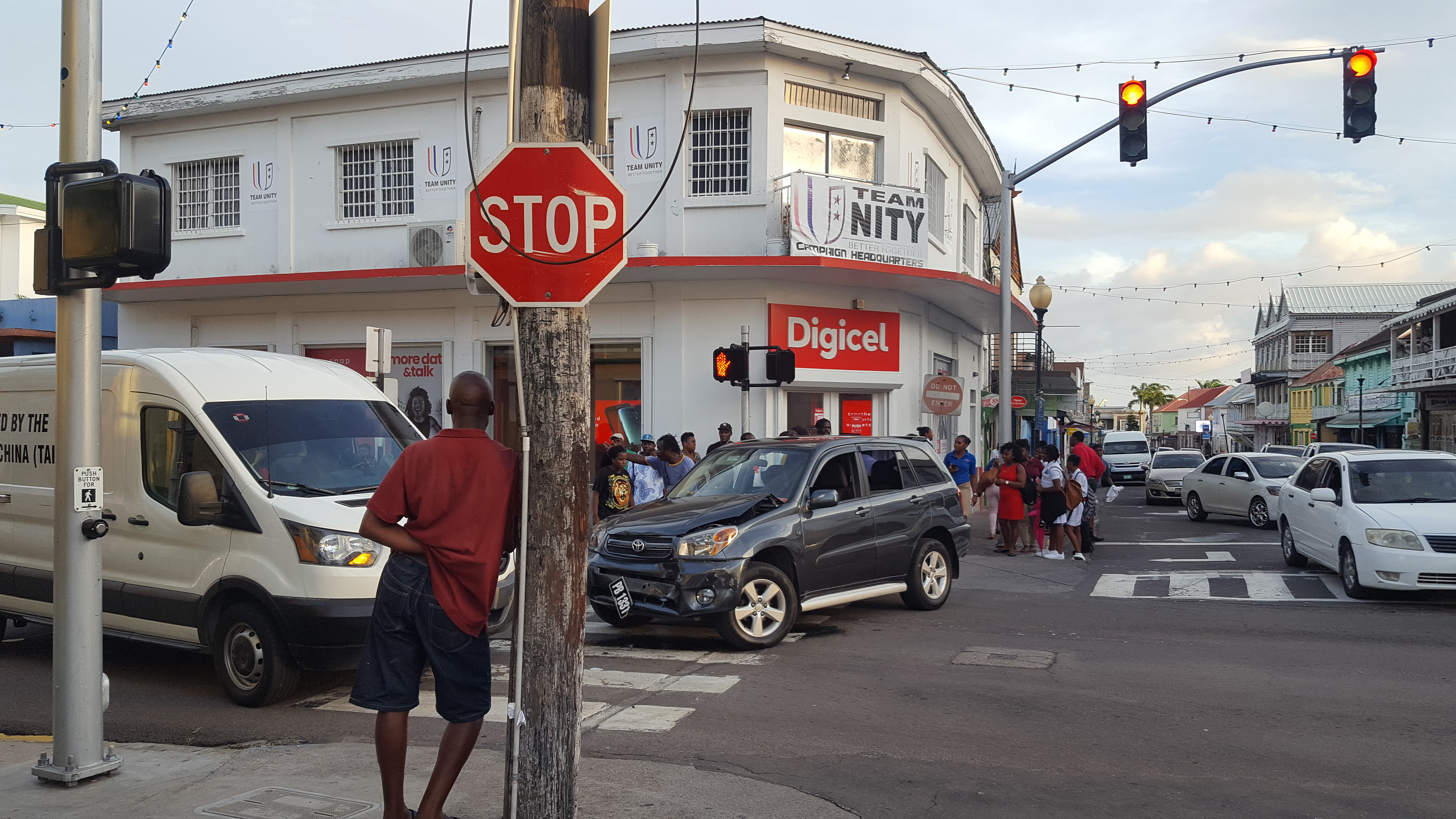 BASSETERRE, St.Kitts (Wednesday 26th September 2018)– A traffic accident within the vicinity at the intersection of Fort and Cayon Streets yesterday caused a debate among drivers and pedestrians alike about who was wrong as it relates the street lights signals.