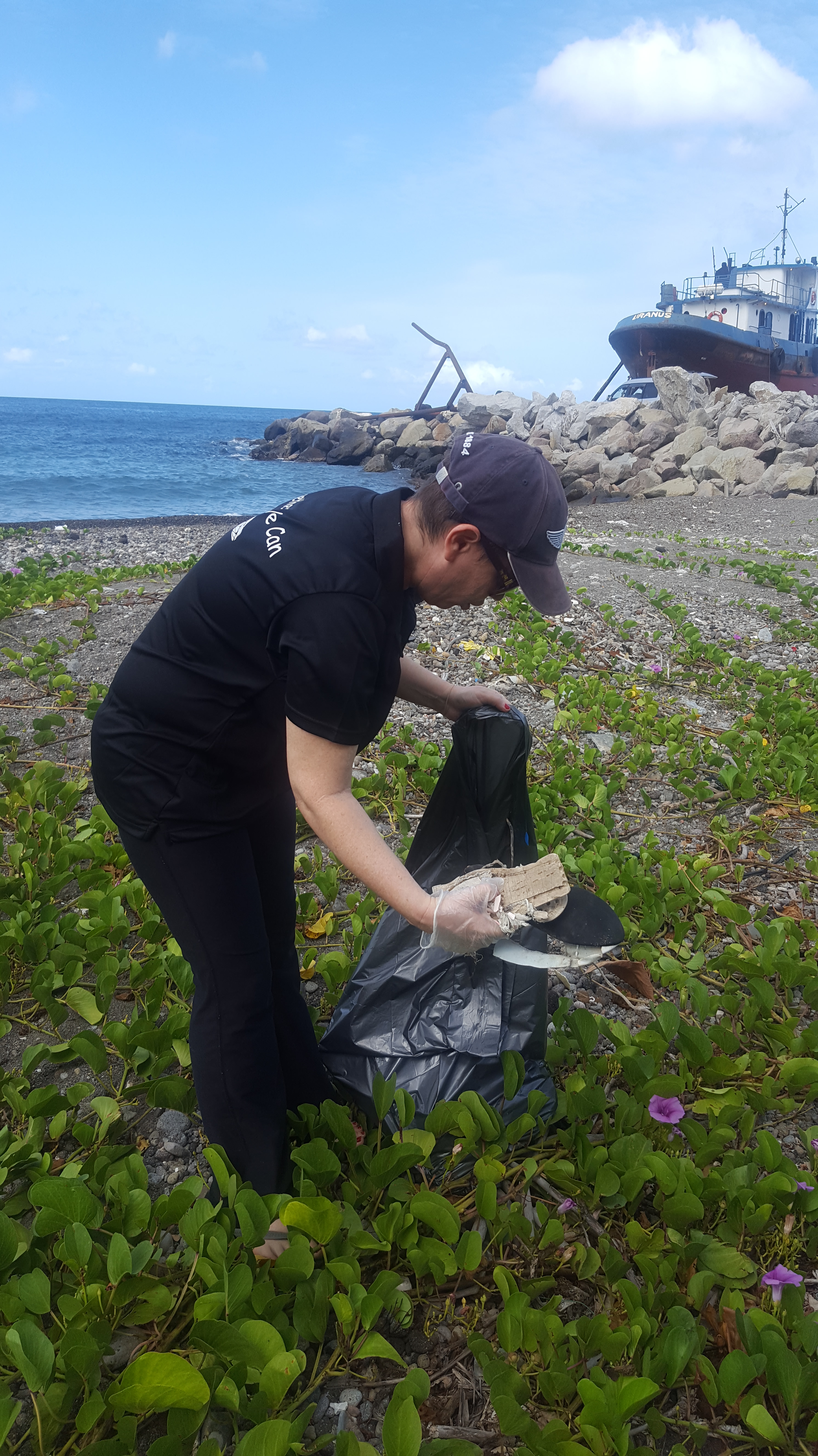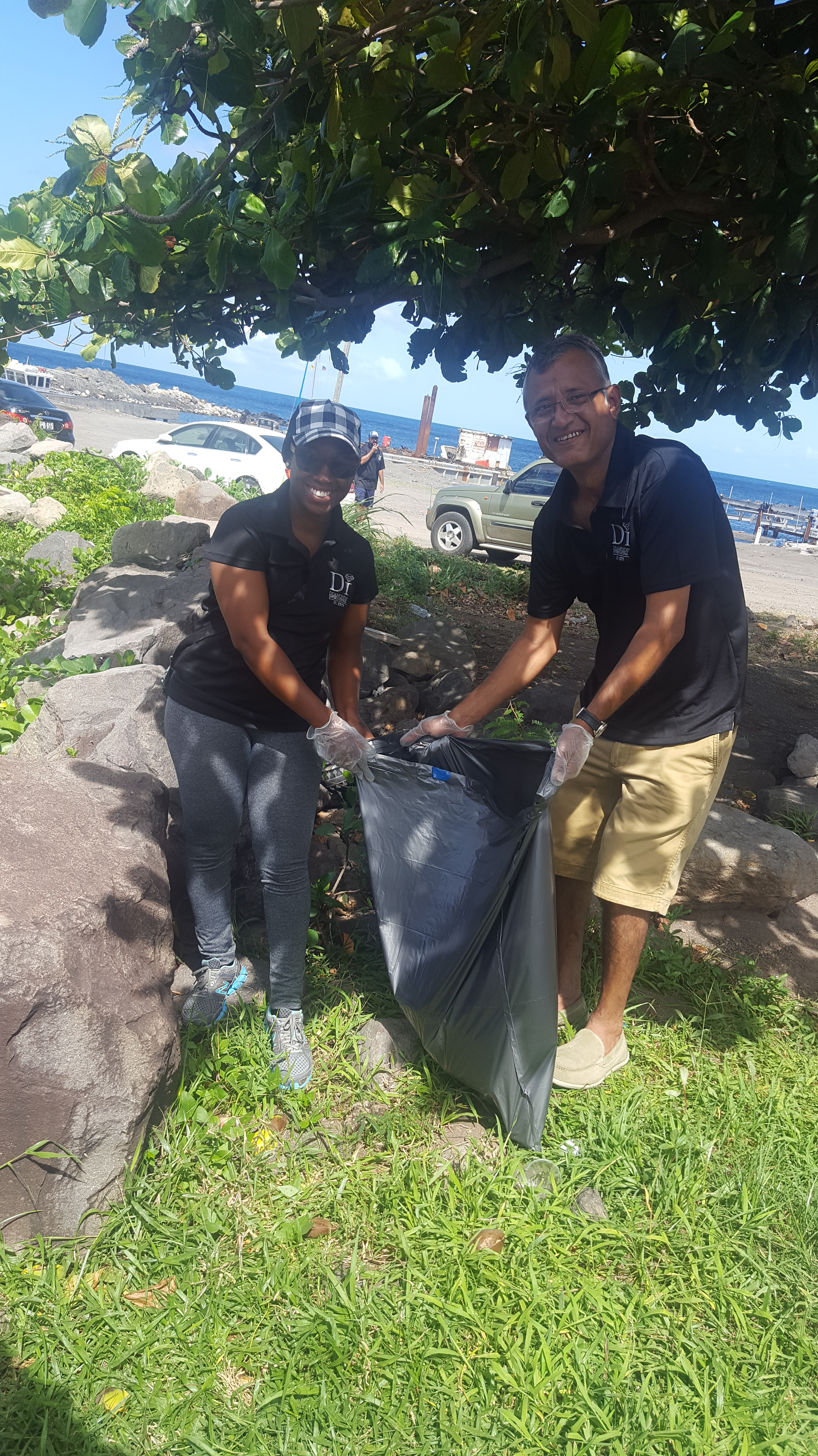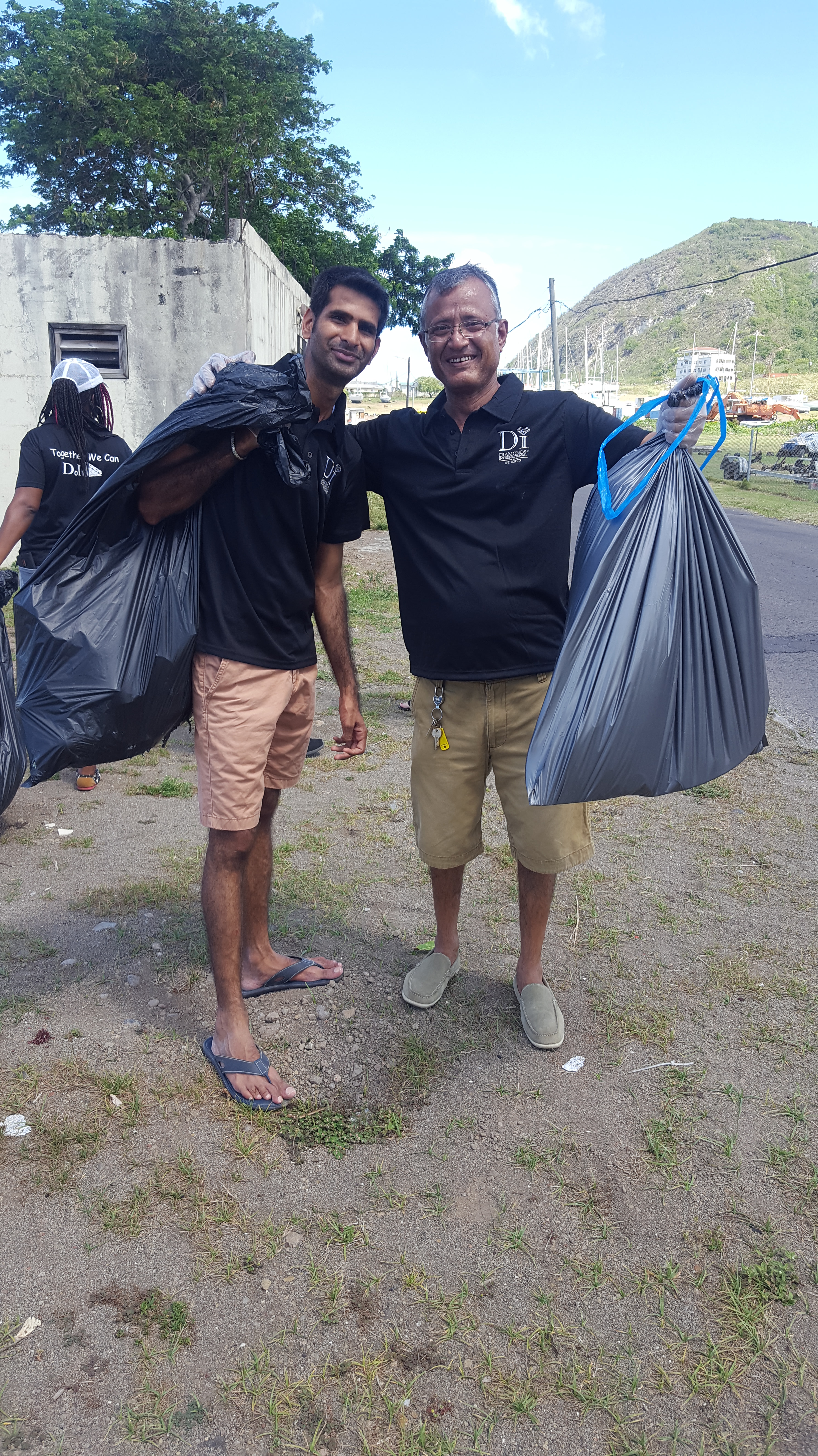 After the waste was collected, the Diamonds International St. Kitts crew were able to place the filled trash bags in the garbage collection space of the boat yard facility with permission granted by the company.
