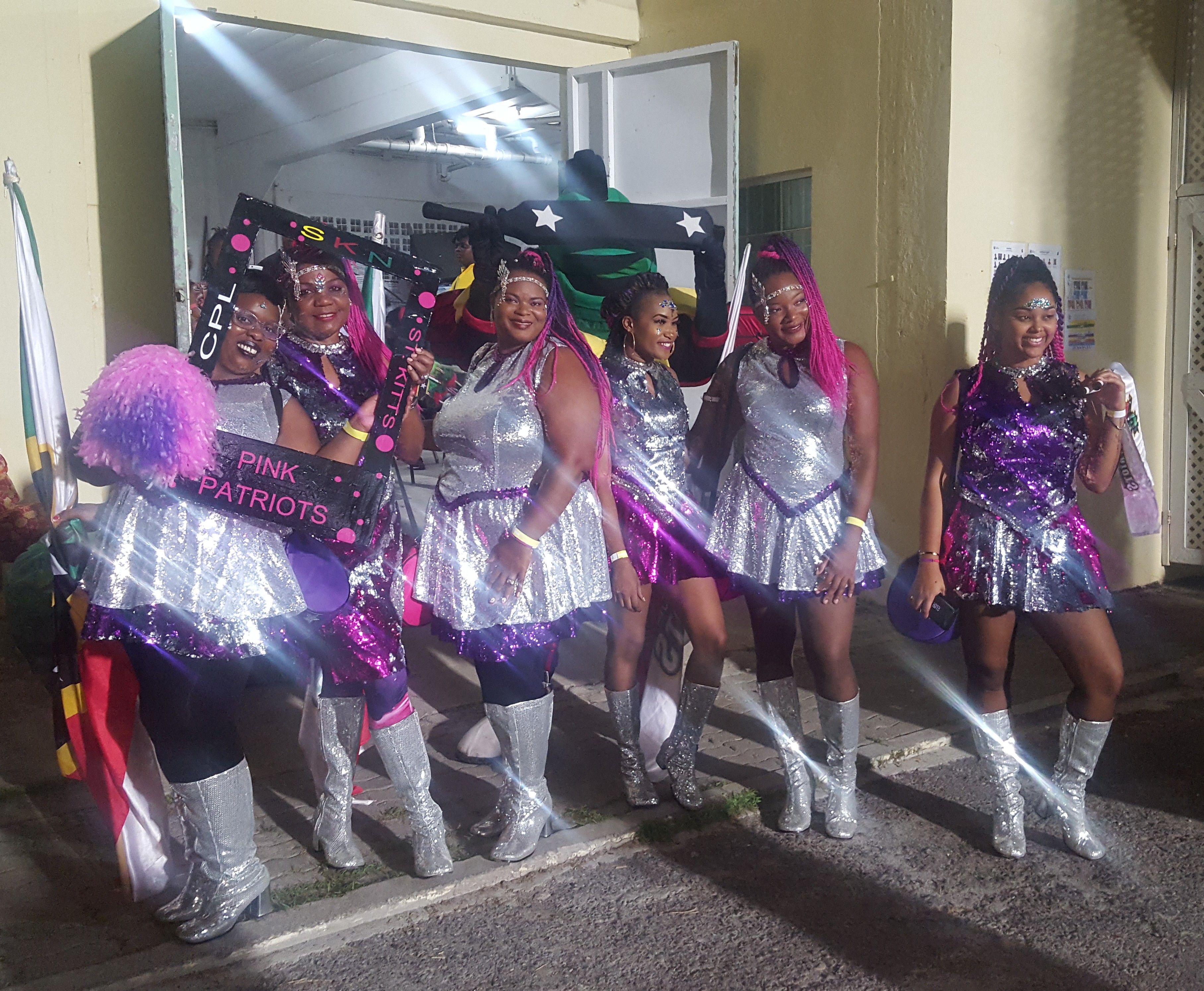 Photo caption: The St.Kitts Pink Patriots - (L to R) Renee Taylor, Natalia Louis, Shamarie Abbott, Kimberly Hodge, Shandarie Abbott and Lakeisha Davis- are among other citizens and residents who have cheered the winning ways of the St.Kitts & Nevis Patriots cricket team (Spokesman Snap)