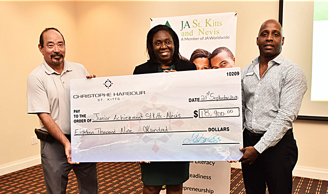 (Friday 21st September, 2018)-Over 1,000 students will benefit from funding support for the newly relaunched Junior Achievers St. Kitts-Nevis, when a major contribution from the Christophe Harbour Foundation was presented during a ceremony on 21st September, at the Ocean Terrace Inn.