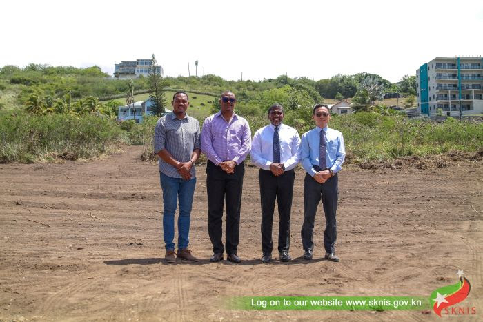 Joining the Honourable Prime Minister on the site visit today (Tuesday, July 11) at Camps were Deputy Prime Minister, the Honourable Dr. Geoffrey Hanley; Resident Ambassador of the Republic of China (Taiwan) to St. Kitts and Nevis, His Excellency Michael Lin; His Excellency Ambassador Leon Natta-Nelson and representatives from Overseas Engineering and Construction Company (OECC) from Taiwan.