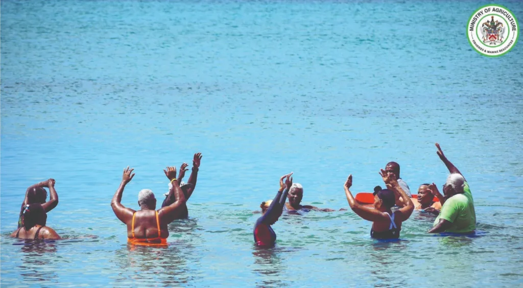(MOA Basseterre, St. Kitts, 16 October 2024): On Tuesday 15th October 2024, seniors from across St. Kitts gathered at Frigate Bay Beach for a special World Food Day event designed to promote ocean awareness and the importance of the sea as a vital source of food and nutrition. The initiative dubbed, “World Food Day Beach Aerobics” was held in collaboration with the Department of Marine Resources St. Kitts and Nevis and the Department of Youth Empowerment, Ageing, and Disabilities, aimed to empower older adults with knowledge about marine ecosystems while promoting healthy living through physical activity.