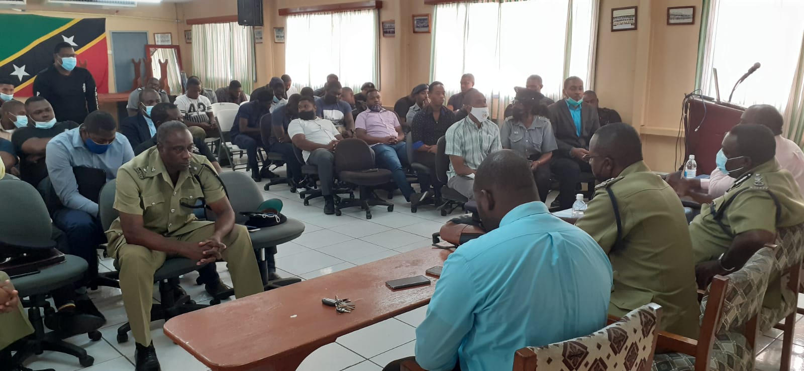 Basseterre, St. Kitts, April 13, 2021 (RSCNPF): An emergency meeting was held at the Police Training School on Monday, April 12, 2021 at which the High Command of The Royal St. Christopher and Nevis Police Force (RSCNPF) met with Police Officers serving in the Federation who are natives of St. Vincent and the Grenadines.