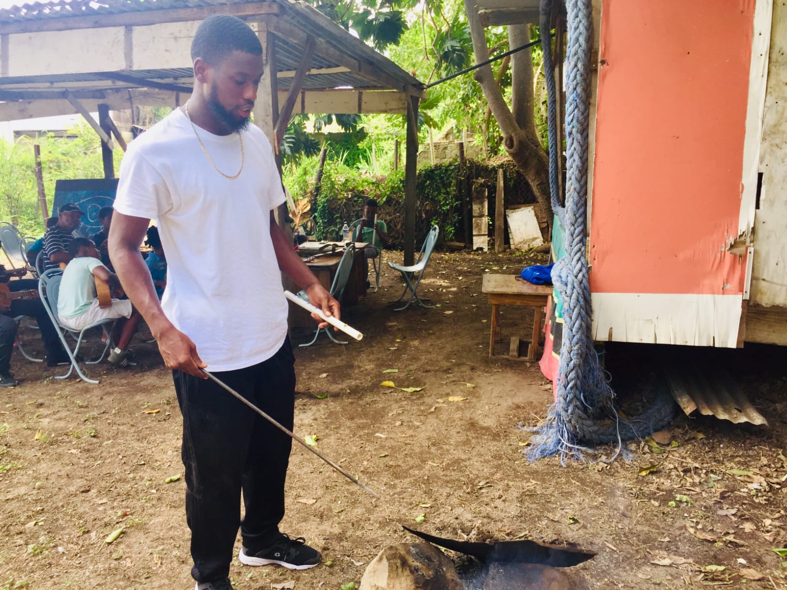 Isaac highlighted that he is taking precaution while teaching the fife making because he does not want the children to get burnt.
