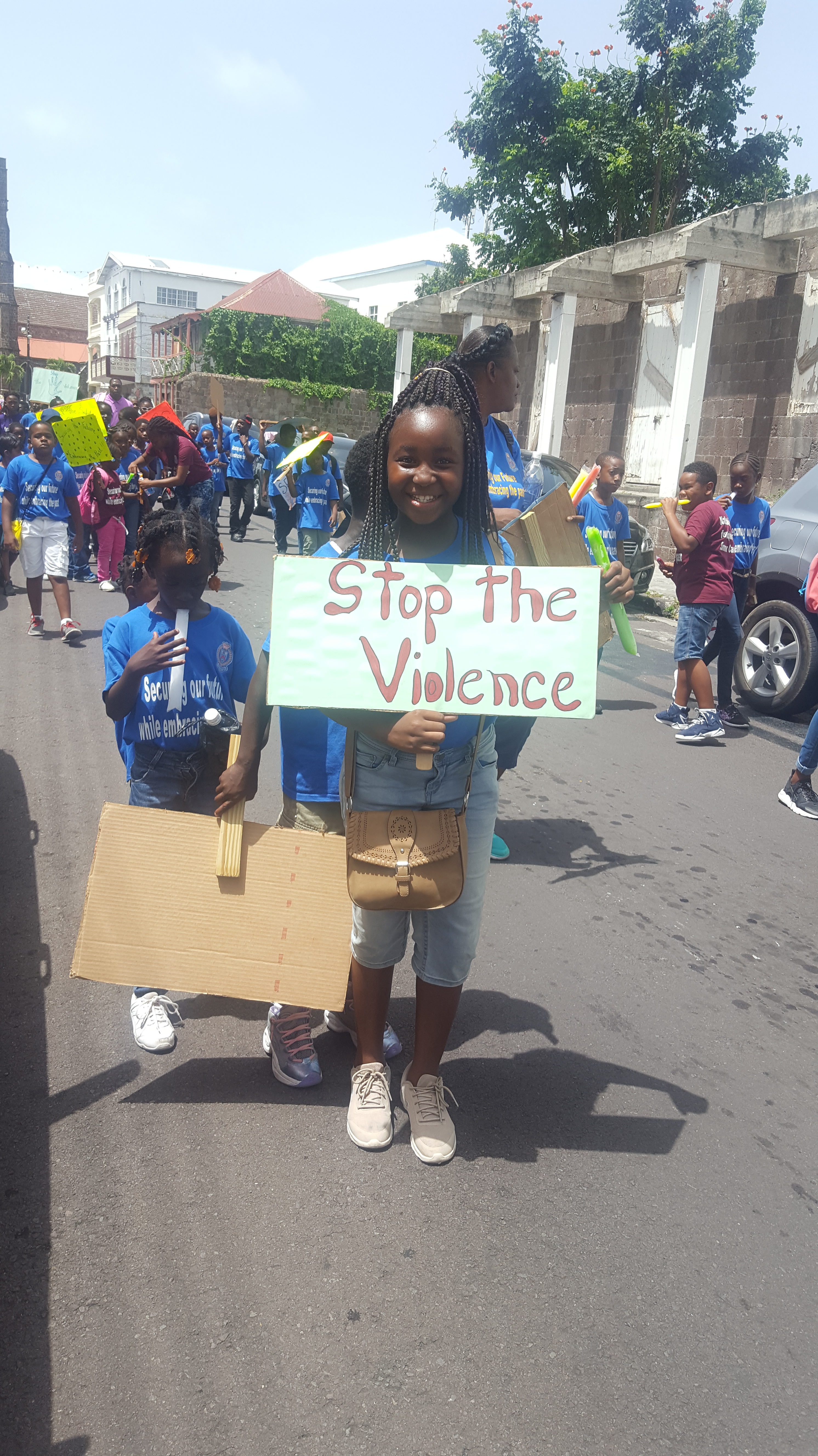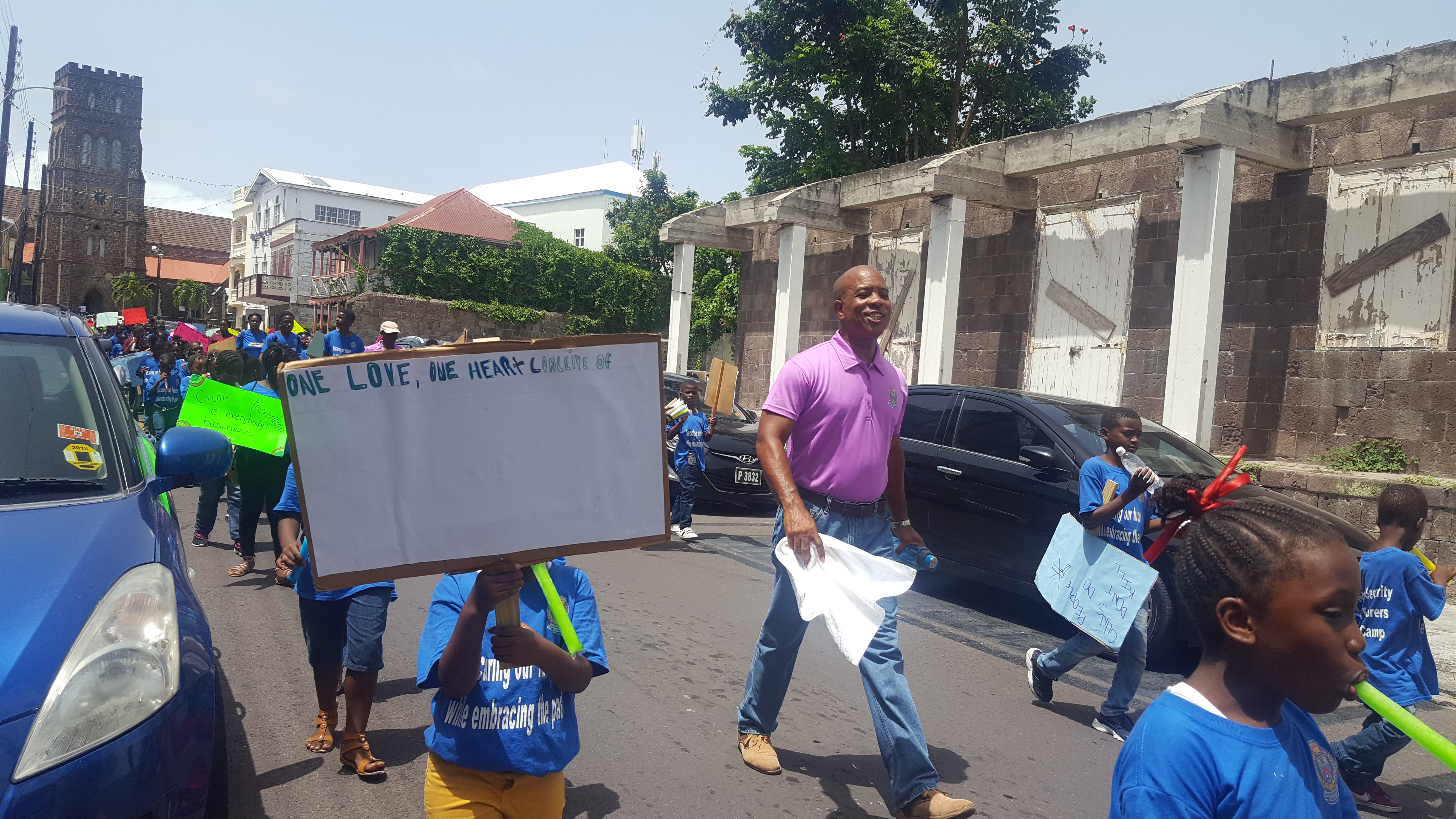 BASSETERRE, St. Kitts ( August 2018)- Last Friday afternoon (3rd August), over 300 participants of the recently ended second annual Youth Explorers Summer Camp- organised by the Ministry of National Security and the Royal St. Christopher and Nevis Police Force-paraded through the streets of Basseterre sending messages via placards in calling for an end to the issue of crime and violence here in St.Kitts- Nevis.