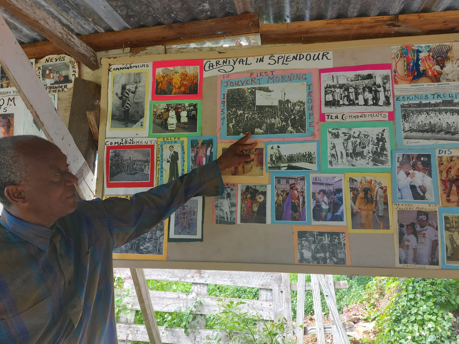 Well-known Cultural Preservationist and keeper of the Zack's Historical- Cultural Library and Museum (located at Buckley’s Estate) Winston ‘Zack’ Nisbett points to a display showing a photo of the first carnival J’ouvert in December 1957 during a tour by this media house on Tuesday 27th October 2020 (Spokesman Snap)